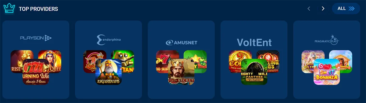 Postupně jsme rozšířili naši nabídku o více než 15 000 her a slotů. Spolupracujeme s předními poskytovateli jako Pragmatic Play, NetEnt, Microgaming a Evolution Gaming.