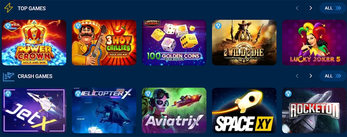 | Typy her | Slots, Table Games, Live Casino, Sports |