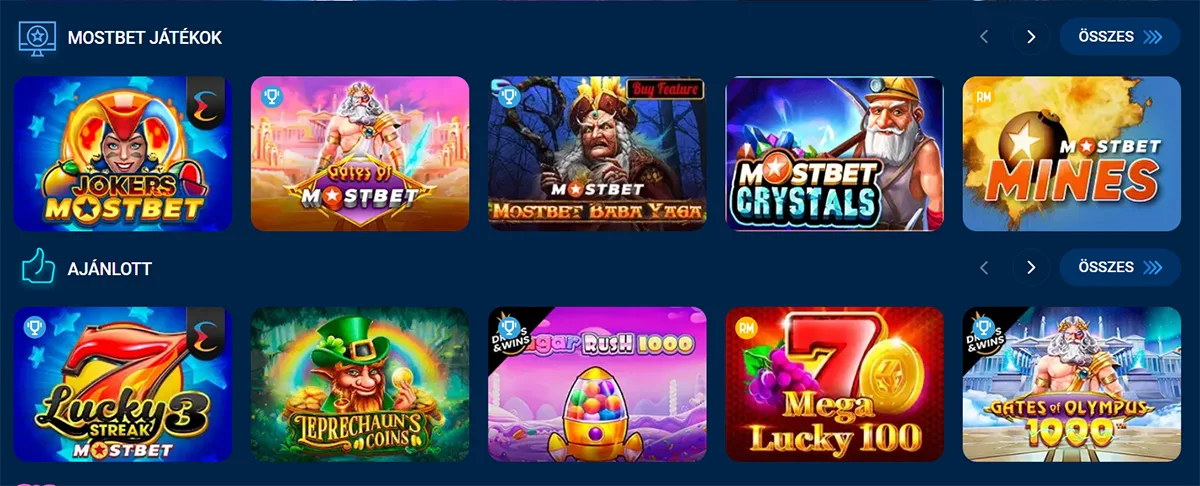 Játékválaszték a Mostbet Casino Hungary Oldalán
