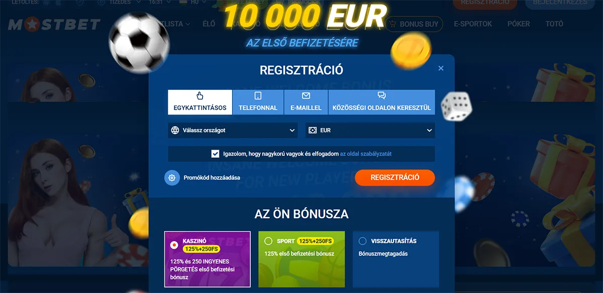 A Mostbet Casino Hungary oldalán történő regisztráció egyszerű és gyors folyamat. Kövesse az alábbi lépéseket, hogy néhány perc alatt létrehozhassa fiókját és elkezdhesse a játékot.