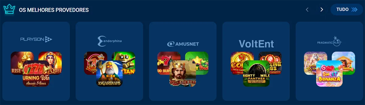 | Provedores | Pragmatic Play, NetEnt, Microgaming, Evolution |