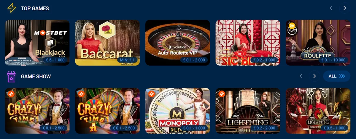 Secțiunea live casino include jocuri conduse de dealeri reali în timp real. Evolution Gaming furnizează majoritatea jocurilor noastre live de înaltă calitate.